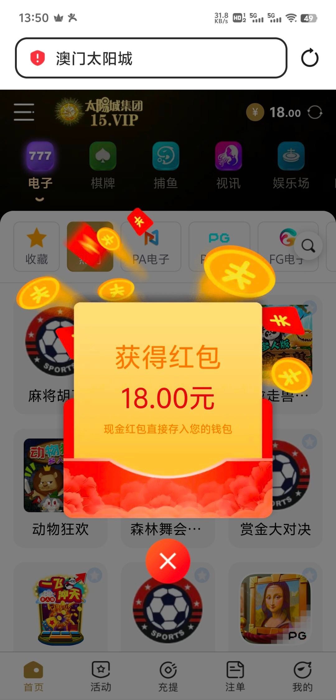 接到电话登录送18,有号可以登陆看看,禁止充值。