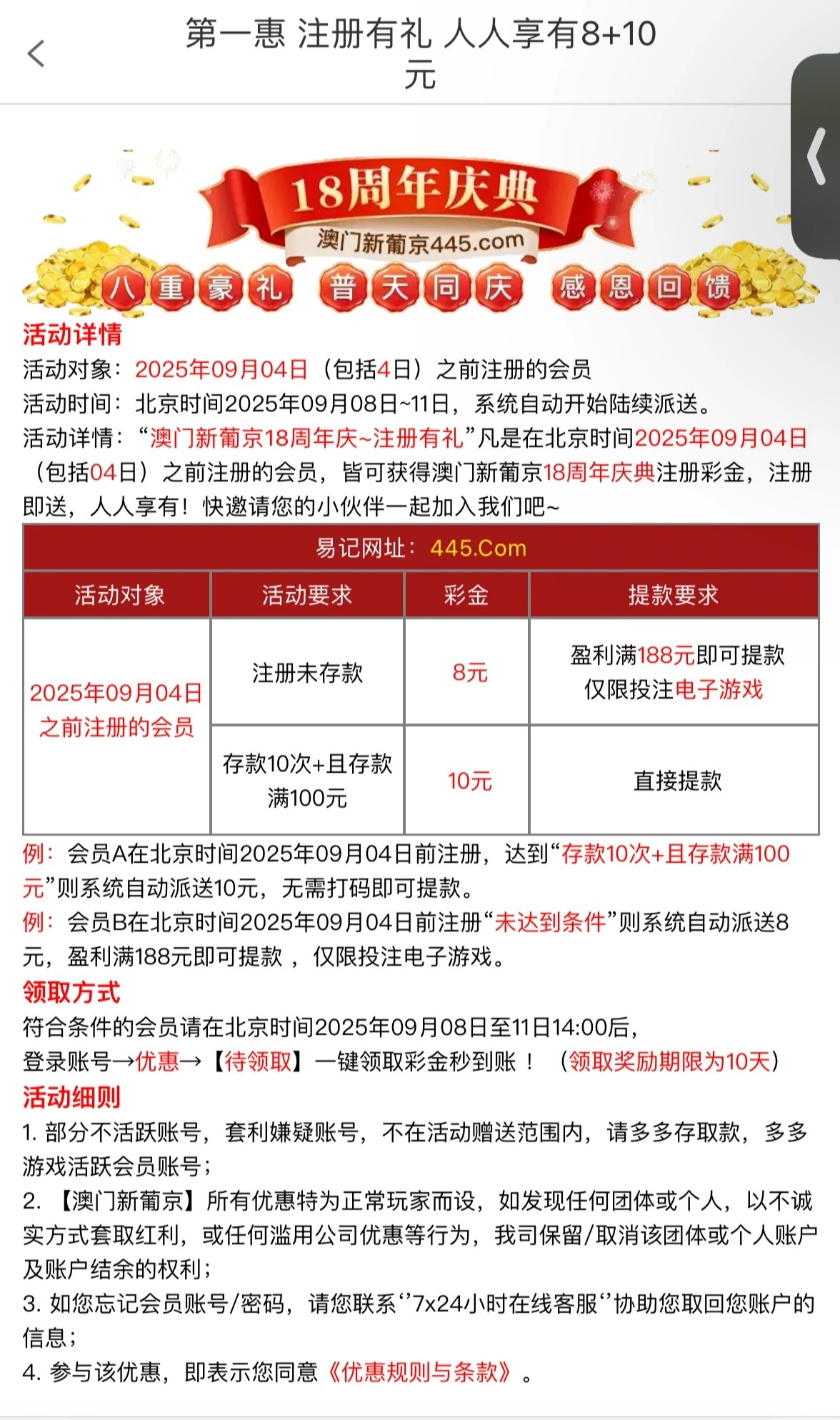 【新葡京445】历史注册彩金